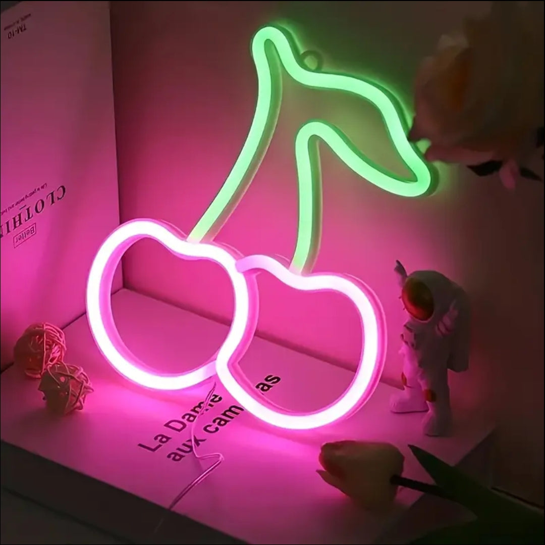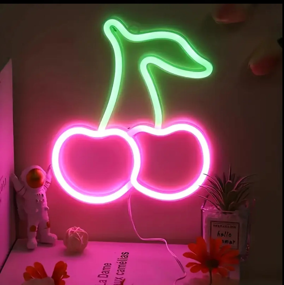 სიყვარულითა და სტილით სავსე LED ნიშანი ჩერის დიზაინით, რომელიც სივრცეს მხიარულობას და თანამედროვე ელფერს მატებს. იდეალურია ოთახისთვის, სტუდიისთვის ან დეკორად ნებისმიერი სივრცისთვის.