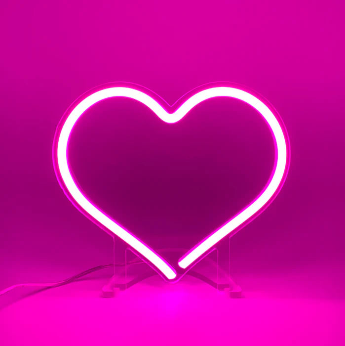 Heart ნეონი ელეგანტური LED ნიშანი გულის ფორმით, რომელიც ინტერიერს სითბოსა და სტილს მატებს. იდეალურია საძინებლისთვის, ღონისძიებისთვის ან დეკორად ნებისმიერი სივრცისთვის.